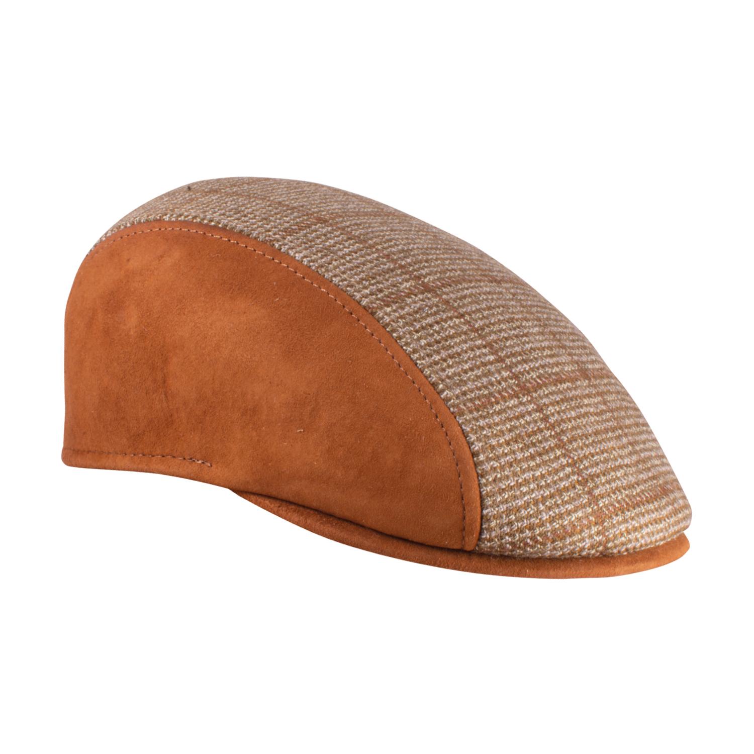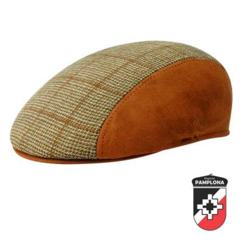 Boina Pamplona Tipo Inglesa Fina De Cuero Gamuza Y Lana Escocesa
